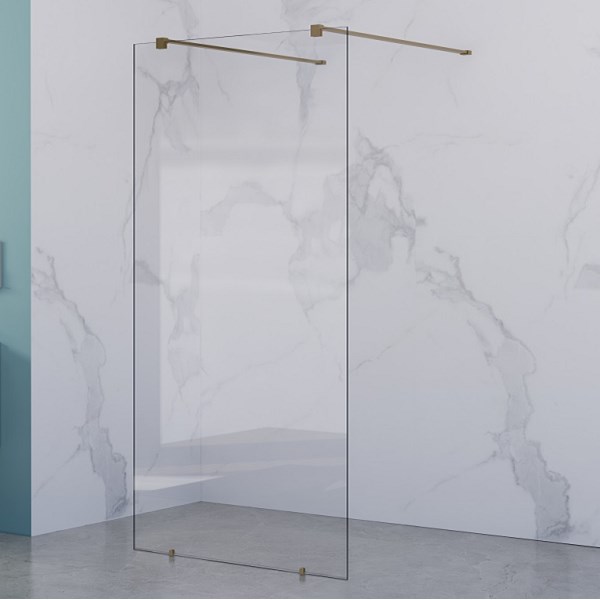 | TrisLine Walk-In free vrijstaande inloopdouche helder glas 107x 200cm met stabilisatiestangen goud geborsteld |