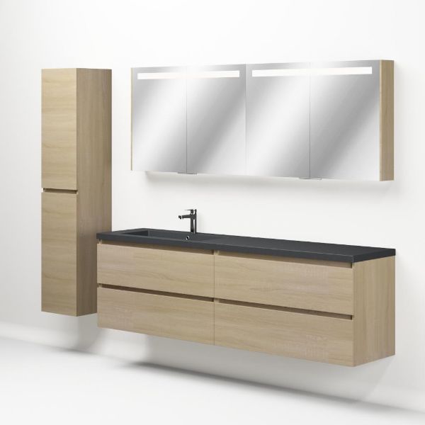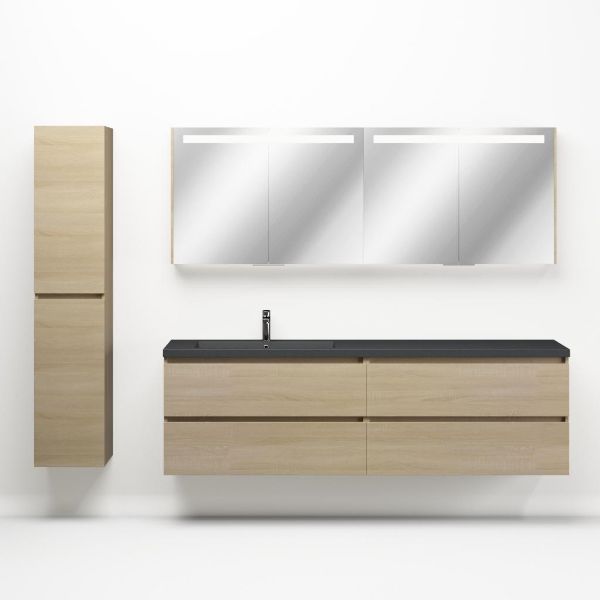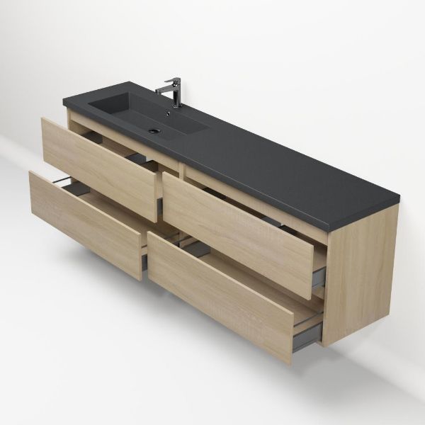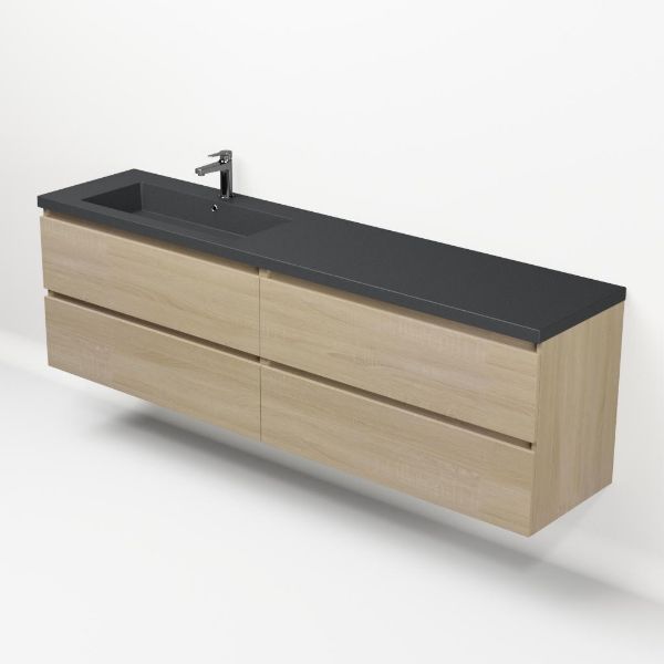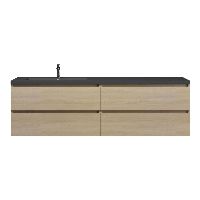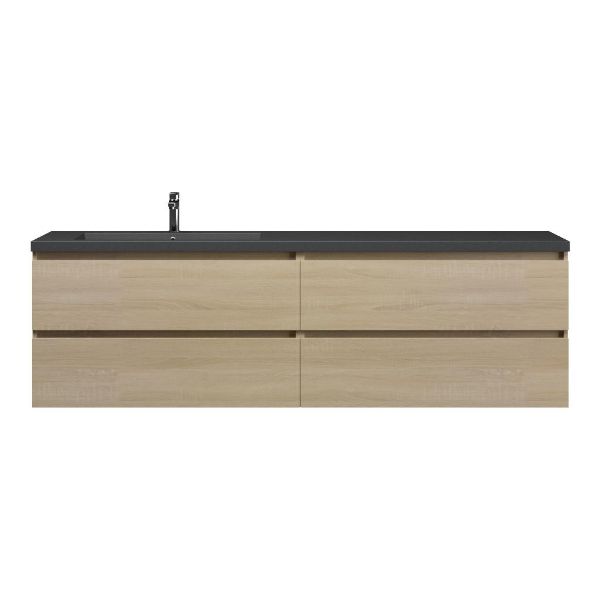 | | Bellanti Elena/Esta-q badmeubel 200x46 4 softclose laden licht eiken greeploos quartz enkele wastafel links mat grijs met 1 kraangat |