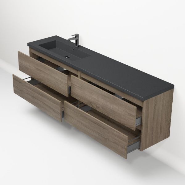 | Bellanti Elena/Esta-q badmeubel 200x46 4 softclose laden donker eiken greeploos quartz enkele wastafel links mat grijs met 1 kraangat |
