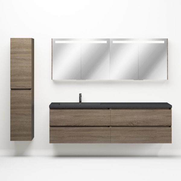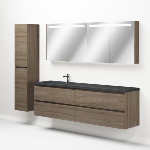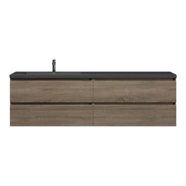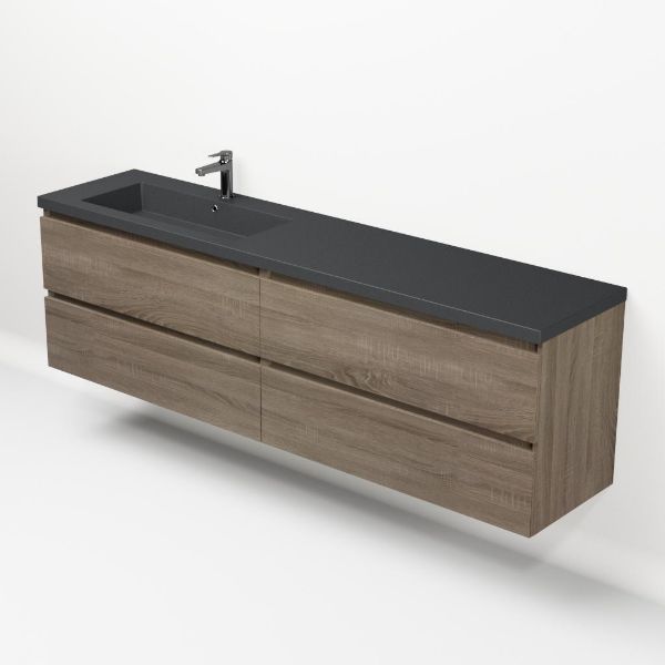 | | Bellanti Elena/Esta-q badmeubel 200x46 4 softclose laden donker eiken greeploos quartz enkele wastafel links mat grijs met 1 kraangat |