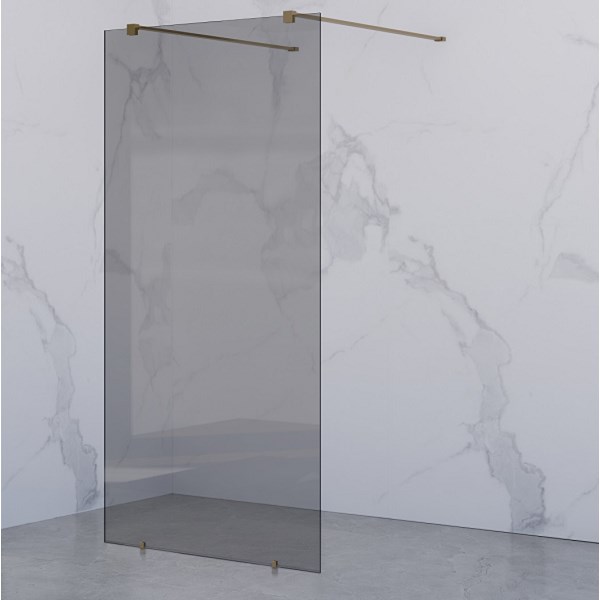 | TrisLine Walk-In free vrijstaande inloopdouche rook/grijsglas, 107x 200cm met stabilisatiestangen goud geborsteld |