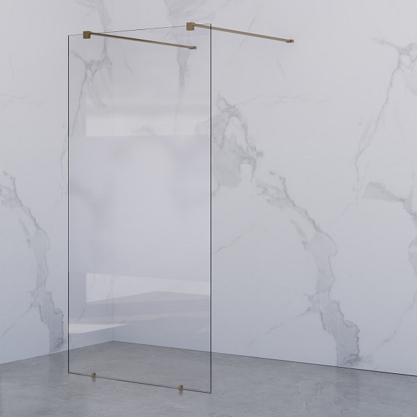 | TrisLine Walk-In free vrijstaande inloopdouche Melkglas/Satin midden glas, 107x 200cm met stabilisatiestangen goud geborsteld |