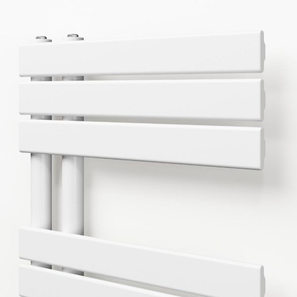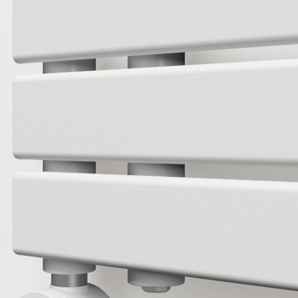 De Trosa is een elektrische desigradiator met vrijhangende horizontale lamellen. Het zorgt voor een behagelijke warmte en voor droge en warme handdoeken. De lamellen wijzen standaard naar rechts maar kunnen ook omgedraaid worden. De gewenste temperatuur en inschakeltijden worden geregeld met de meegekleurde thermostaatklok. De thermostaat kan ook via een Wi-Fi verbinding met een app op de smartphone bedient worden. Dit model heeft een maatvoering van 120 x 50 cm, is uitgevoerd in de kleur wit mat en heeft een warmte-afgifte van 900 watt.