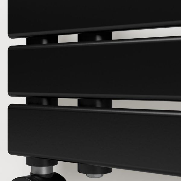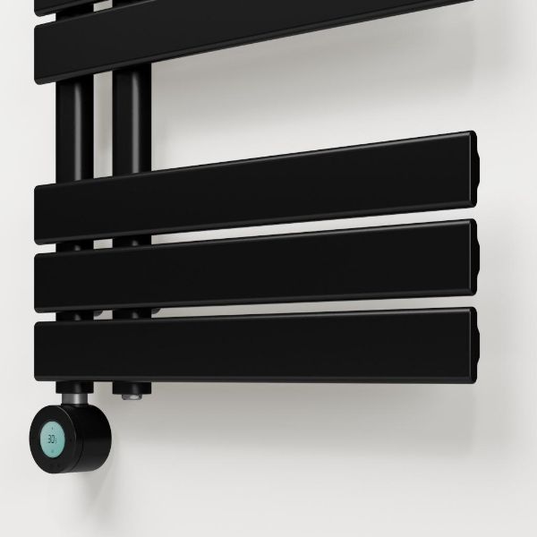 De Trosa is een elektrische desigradiator met vrijhangende horizontale lamellen. Het zorgt voor een behagelijke warmte en voor droge en warme handdoeken. De lamellen wijzen standaard naar rechts maar kunnen ook omgedraaid worden. De gewenste temperatuur en inschakeltijden worden geregeld met de meegekleurde thermostaatklok. De thermostaat kan ook via een Wi-Fi verbinding met een app op de smartphone bedient worden. Dit model heeft een maatvoering van 170 x 50 cm, is uitgevoerd in de kleur zwart mat en heeft een warmte-afgifte van 900 watt.