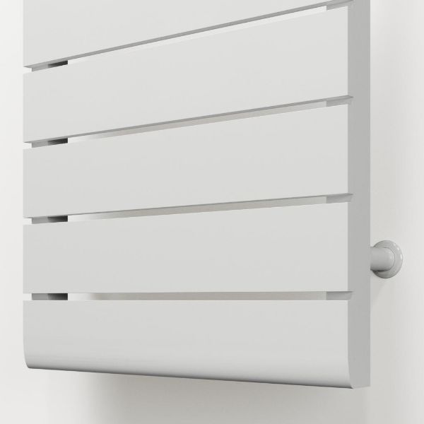 De Vastra badkamer radiator is voorzien van brede horizontale lamellen die het model zijn opvallende uiterlijk geven. Door supergeleidend aluminium te combineren met elektroden, zonder gebruik te maken van een vloeistof, ontstaat een snelle manier van verwarmen. Met de klokthermostaat regelt u de aan/uit tijden en temperatuurinstelling. Deze is met een Wi-Fi verbinding op afstand te bedienen. De radiator moet worden aangesloten op een geaard stopcontact en levert een maximale warmteafgifte van 600 watt. Dit model heeft een maatvoering van 116 x 55 cm en de toplaag is uitgevoerd in de kleur wit glans.
