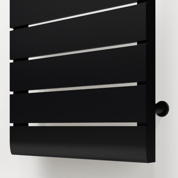 De Vastra badkamer radiator is voorzien van brede horizontale lamellen die het model zijn opvallende uiterlijk geven. Door supergeleidend aluminium te combineren met elektroden, zonder gebruik te maken van een vloeistof, ontstaat een snelle manier van verwarmen. Met de klokthermostaat regelt u de aan/uit tijden en temperatuurinstelling. Deze is met een Wi-Fi verbinding op afstand te bedienen. De radiator moet worden aangesloten op een geaard stopcontact en levert een maximale warmteafgifte van 600 watt. Dit model heeft een maatvoering van 116 x 55 cm en de toplaag is uitgevoerd in de kleur zwart mat.