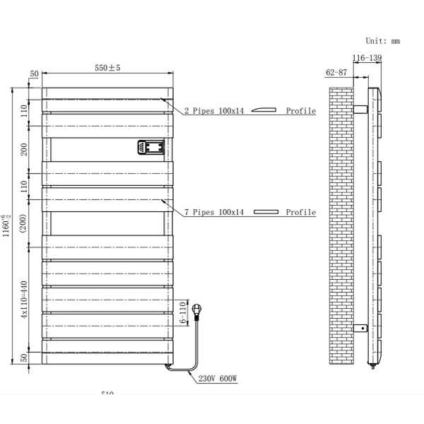 | | Radix Vastra elektrische Design radiator 1160x550mm mat zwart+ wifi en klokthermostaat 600watt |