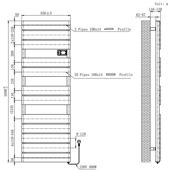 | | Radix Vastra elektrische Design radiator 1600x550mm mat wit + wifi en klokthermostaat 800watt |