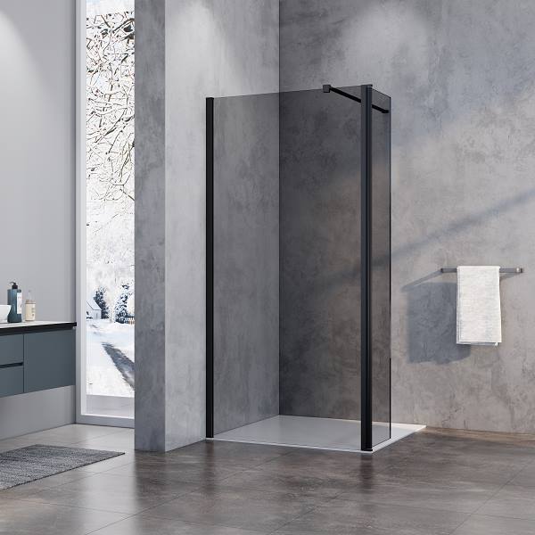 Deze Walk-in inloopdouche bestaat uit een vaste glazen douchewand, in verschillende breedtematen, plus een draaibaar zijdeel van 37 cm breed. Het veiligheidsglas heeft een dikte van 8 mm en is aan de binnenzijde voorzien van een Easy Clean nanocoating. Hierdoor is het glas makkelijker te reinigen en maakt kalkaanslag weinig kans. Deze Walk-in met zijdeel is zowel met helder- als grijs/rookglas leverbaar. Het beweegbare deel is aan de onderzijde iets korter wat zorgt voor een volledige vrije draaing zowel naar binnen als naar en buiten toe. De inloopdouche wordt geleverd met een muurprofiel, draaiprofiel en stabilisatiestang in de kleur zwart mat.