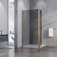Deze Walk-in inloopdouche bestaat uit een vaste glazen douchewand, in verschillende breedtematen, plus een draaibaar zijdeel van 37 cm breed. Het veiligheidsglas heeft een dikte van 8 mm en is aan de binnenzijde voorzien van een Easy Clean nanocoating. Hierdoor is het glas makkelijker te reinigen en maakt kalkaanslag weinig kans. Deze Walk-in met zijdeel is zowel met helder- als grijs/rookglas leverbaar. Het beweegbare deel is aan de onderzijde iets korter wat zorgt voor een volledige vrije draaing zowel naar binnen als naar en buiten toe. De inloopdouche wordt geleverd met een muurprofiel, draaiprofiel en stabilisatiestang in de kleur goud geborsteld.
