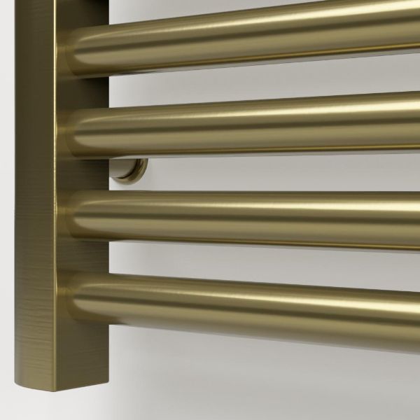 De Karda designradiator in de kleur goud geborsteld is voorzien van horizontale ronde buizen die het model een strak en tijdloos uiterlijk geven. Door supergeleidend aluminium te combineren met elektroden, zonder gebruik te maken van een vloeistof, ontstaat een snelle manier van verwarmen. Via de klokthermostaat worden de schakeltijden en temperatuurinstelling geregeld. De radiator wordt aangesloten op een geaard stopcontact en levert een maximale warmteafgifte van 700 watt. Belangrijkste kenmerken