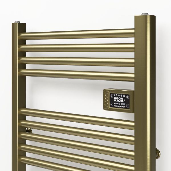 | Radix Karda Elektrische Designradiator 1400x540mm geborsteld goud met verwarmingelement 700W + wifi klokthermostaati |