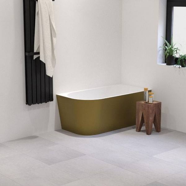 | Alesso Corner bad hoekbad / back-to-wall 140x70x57cm rechts geborsteld goud/ mat wit MQ1040 |