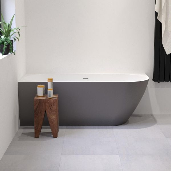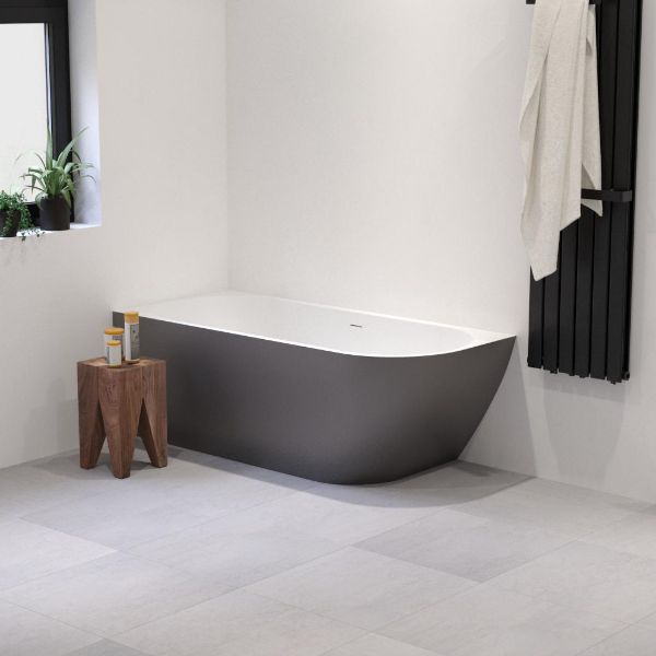| Alesso Corner bad hoekbad / back-to-wall 170x75x60cm links gunmetal licht/mat wit |