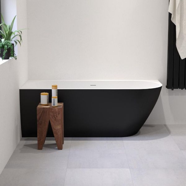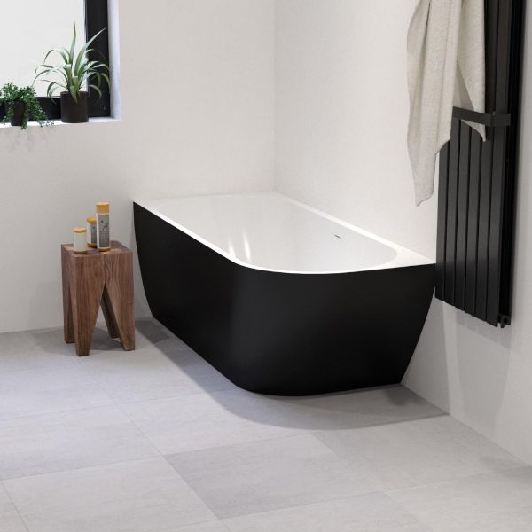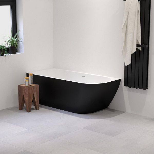 | Alesso Corner bad hoekbad / back-to-wall 170x75x60cm links mat zwart/glans wit |