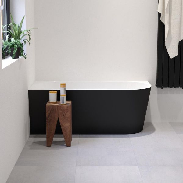 | Alesso Corner bad hoekbad / back-to-wall 150x73x57cm links mat zwart/ glans wit |