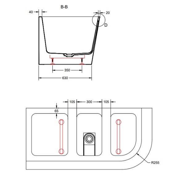De installatie van het bad is relatief eenvoudig. Dankzij de voorgemonteerde stelpoten heeft men weinig montagewerk. Verder is het bad aan de onderzijde voorzien van een open ruimte voor de sifon en afvoerslang. Hierdoor hoeft men niet de vloer in voor het plaatsen van een afvoer. Wij adviseren de bijpassende afvoer die u hieronder vindt bij toebehoren.