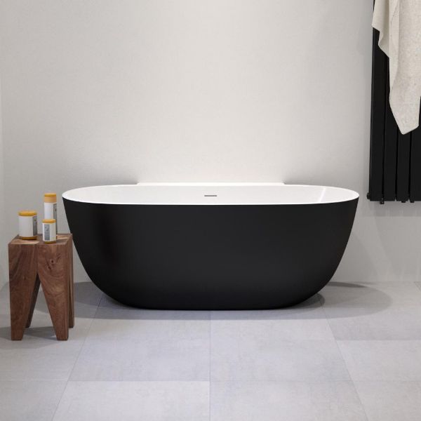 | Alesso Carmina II bad back-to-wall acryl 160x78x59cm met overloop mat zwart/glans wit MQ3060 |