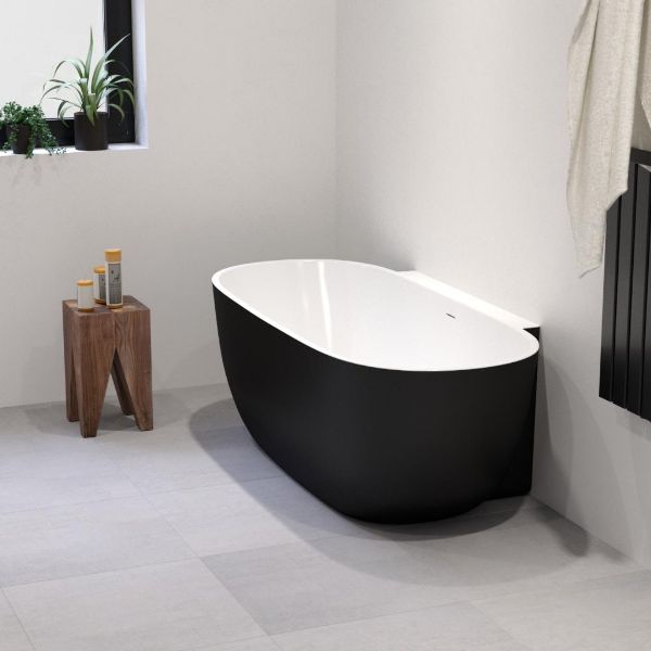 | Alesso Carmina II bad back-to-wall acryl 170x80x59cm met overloop mat zwart/glans wit |