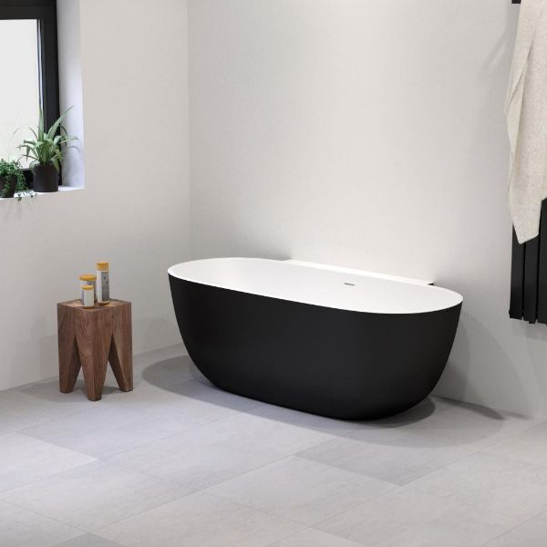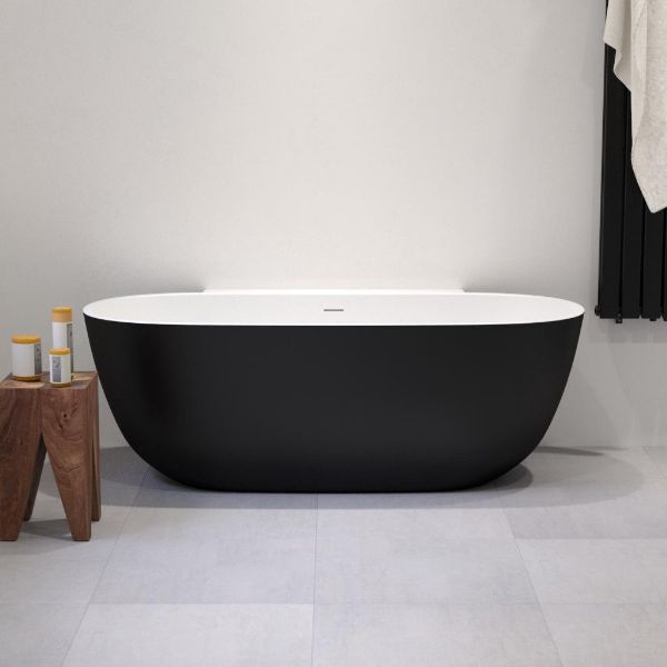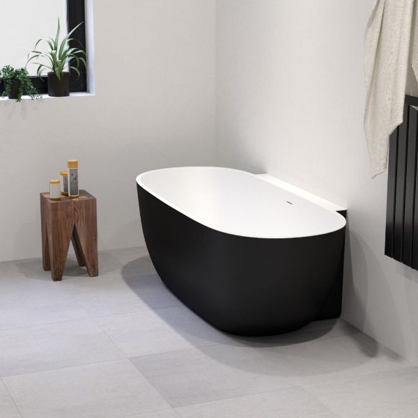 | Alesso Carmina II bad back-to-wall acryl 170x80x59cm met overloop zwart mat/mat wit |