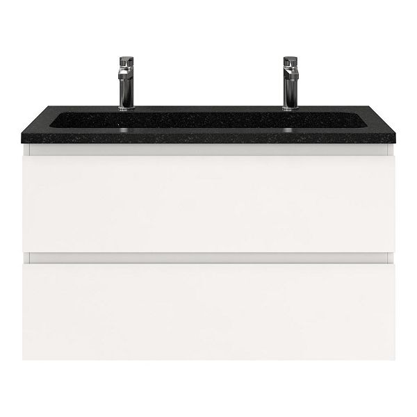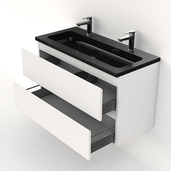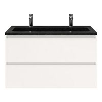 | | Bellanti Gisella/Square badmeubel 100x46 2 softclose laden wit hoogglans greeploos natuursteen wastafel shanxi black met 2 kraangaten |
