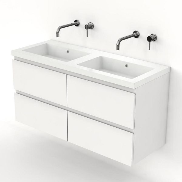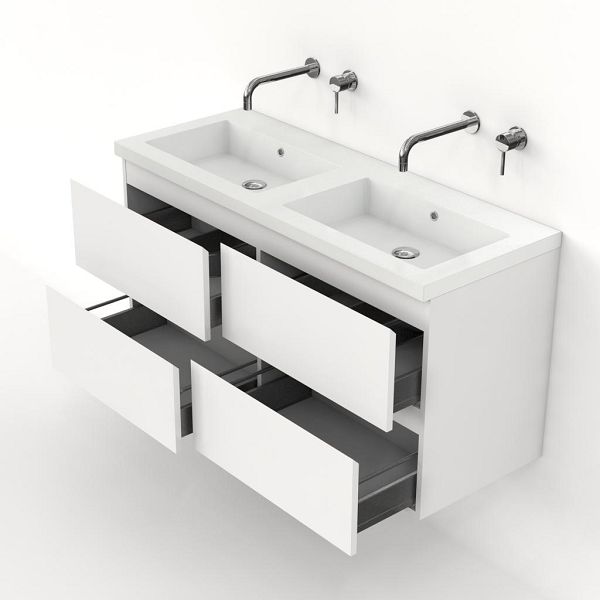 Bellanti Gisella/Esta badmeubel 120x46 4 softclose laden wit hoogglans greeploos polystone wastafel dubbel wit zonder kraangaten