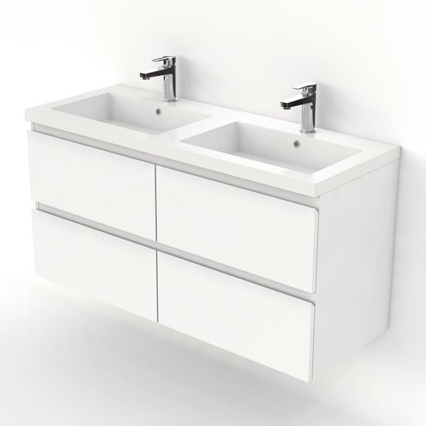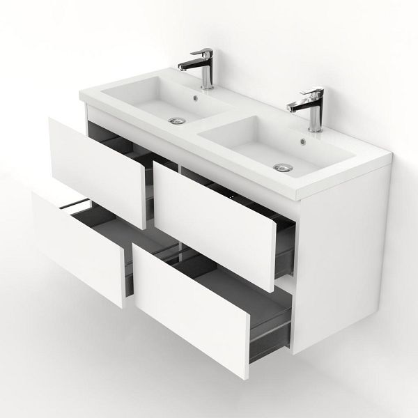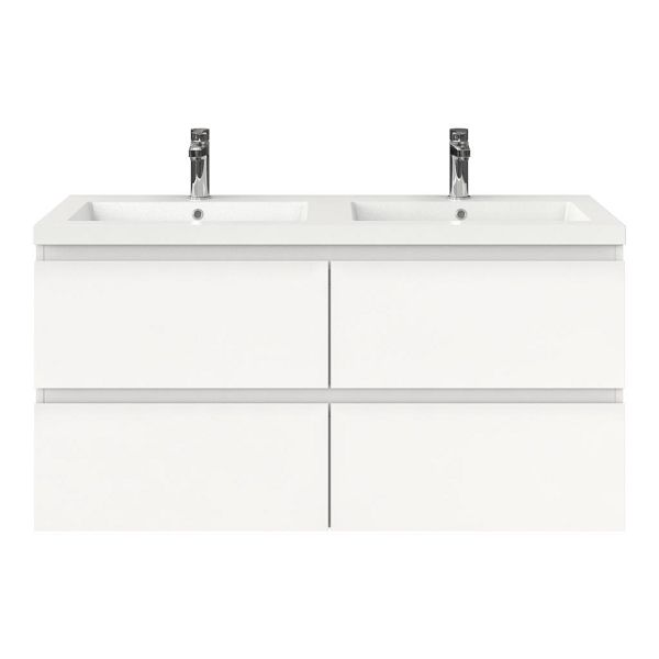 Bellanti Gisella/Esta badmeubel 120x46 4 softclose laden wit mat greeploos polystone wastafel dubbel wit met 2 kraangaten