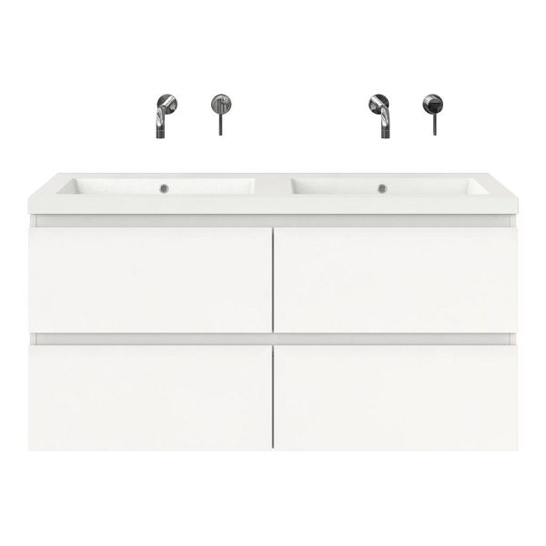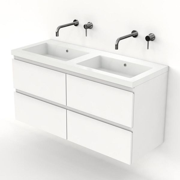 | | Bellanti Gisella/Esta badmeubel 120x46 4 softclose laden wit mat greeploos polystone wastafel dubbel wit zonder kraangaten |