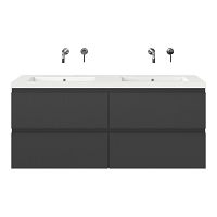 Bellanti Gisella/Esta badmeubel 140x46 4 softclose laden antraciet mat greeploos polystone wastafel dubbel wit zonder kraangaten