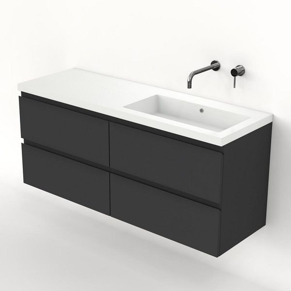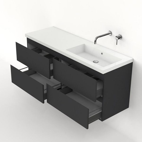 | | Bellanti Gisella/Esta badmeubel 140x46 4 softclose laden antraciet mat greeploos polystone wastafel wit zonder kraangaten |