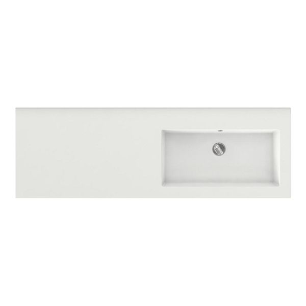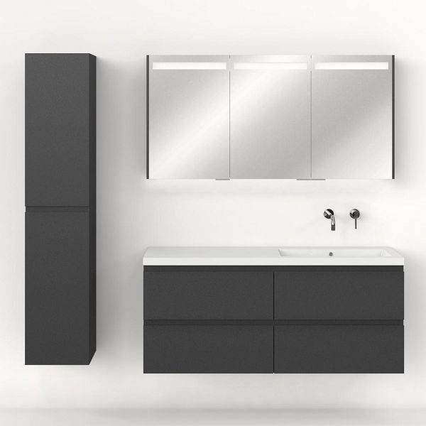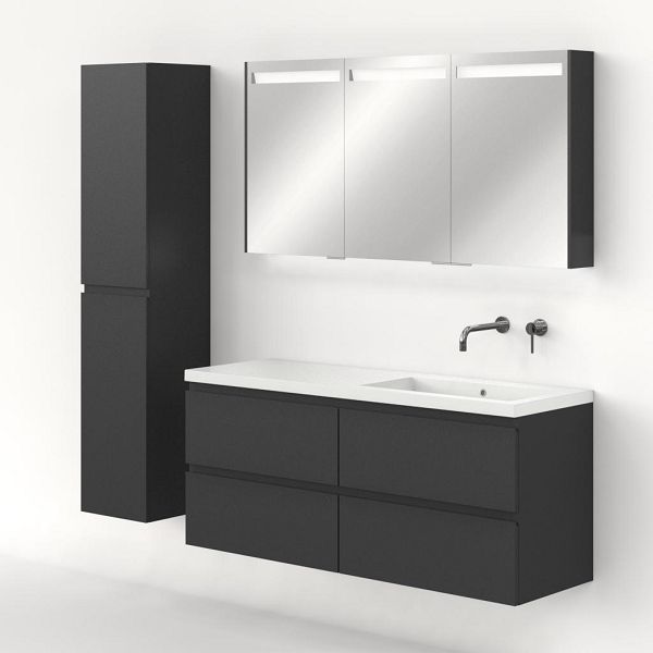 Greeploos badkamermeubel in de kleur antraciet mat is 140 cm breed. De wastafel is vervaardig in polystone en heeft de kleur wit. Dit badkamermeubel met deze wastafel is leverbaar tussen de 60 cm t/m 200 cm