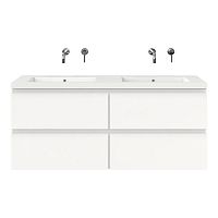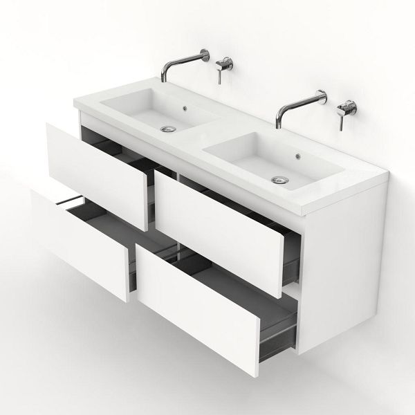 | | Bellanti Gisella/Esta badmeubel 140x46 4 softclose laden wit mat greeploos polystone wastafel dubbel wit zonder kraangaten |