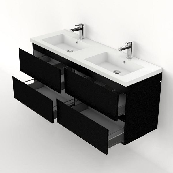 Bellanti Gisella/Esta badmeubel 140x46 4 softclose laden zwart mat greeploos polystone wastafel dubbel wit met 2 kraangaten