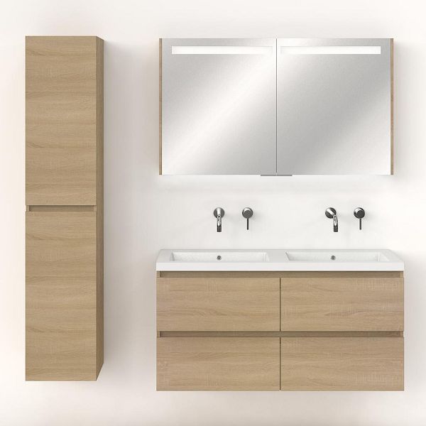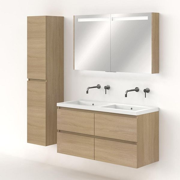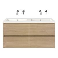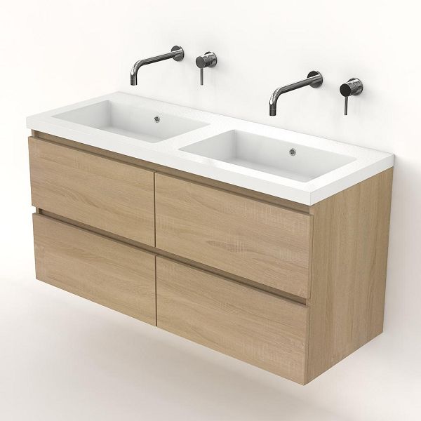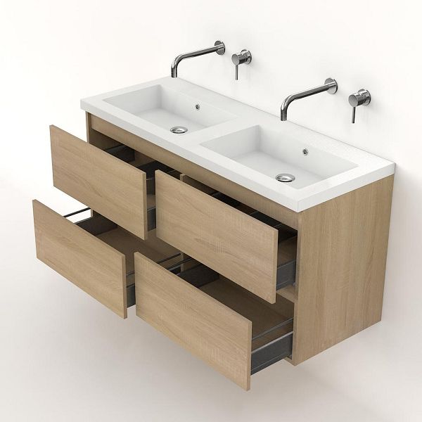 | | Bellanti Elena/Esta badmeubel 120x46 4 softclose laden eiken licht greeploos polystone wastafel dubbel wit zonder kraangaten |