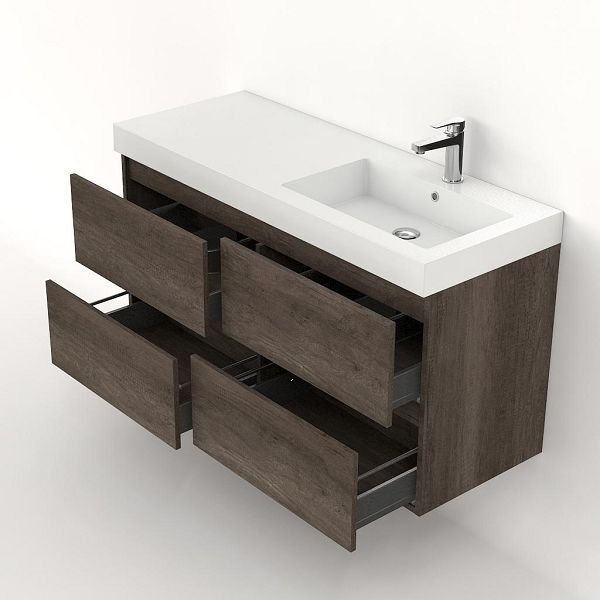 | | Bellanti Elena/Esta badmeubel 120x46 4 softclose laden olm donker grijs greeploos polystone wastafel wit met 1 kraangat |