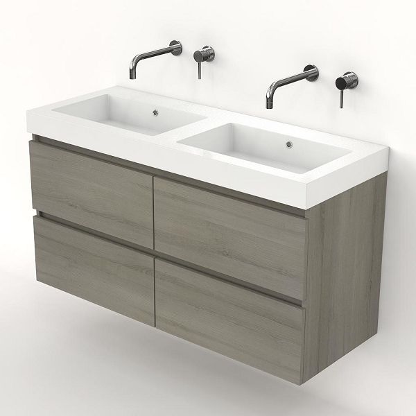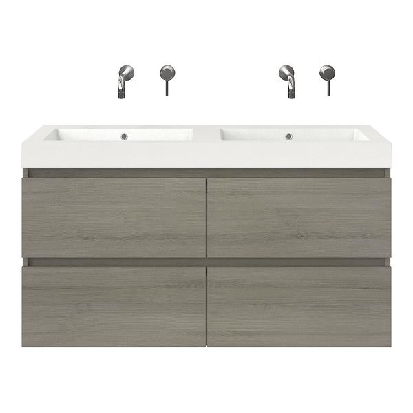 | | Bellanti Elena/Esta badmeubel 120x46 4 softclose laden eiken licht grijs greeploos polystone wastafel dubbel wit zonder kraangaten |