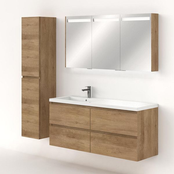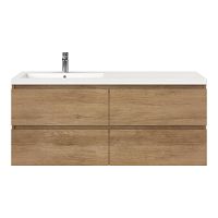 Greeploos badkamermeubel in de kleur olm is 140 cm breed. De wastafel is vervaardig in polystone en heeft de kleur wit. Dit badkamermeubel met deze wastafel is leverbaar tussen de 60 cm t/m 200 cm