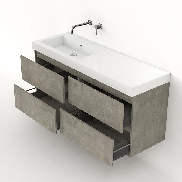 Bellanti Elena/Esta badmeubel 140x46 4 softclose laden beton greeploos polystone wastafel wit zonder kraangaten
