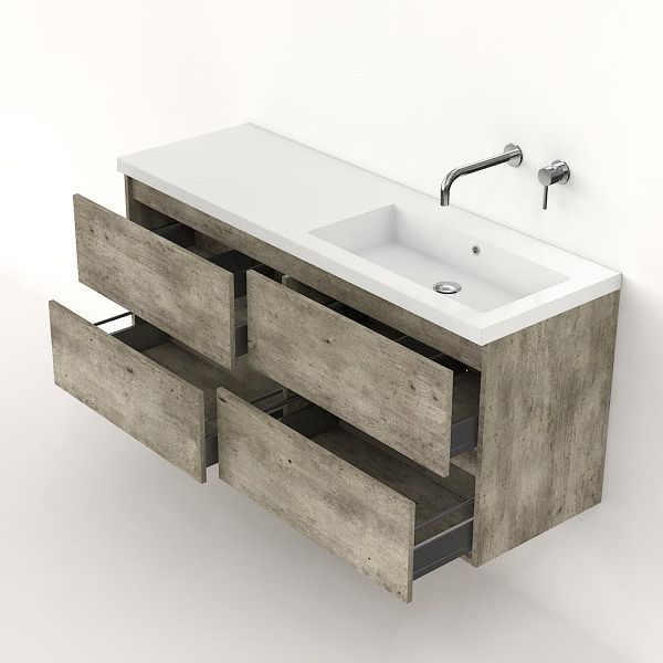 Bellanti Elena/Esta badmeubel 140x46 4 softclose laden steigerhout licht grijs greeploos polystone wastafel wit zonder kraangaten