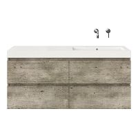 Greeploos badkamermeubel in de kleur steigerhout licht grijs is 140 cm breed.  De wastafel is vervaardig in polystone en heeft de kleur wit. Dit badkamermeubel met deze wastafel is leverbaar tussen de 60 cm t/m 200 cm
