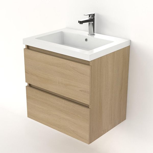 | | Bellanti Elena/Esta badmeubel 60x46 2 softclose laden eiken licht greeploos polystone wastafel wit met 1 kraangat |