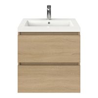 | Bellanti Elena/Esta badmeubel 60x46 2 softclose laden eiken licht greeploos polystone wastafel wit met 1 kraangat |