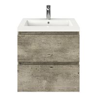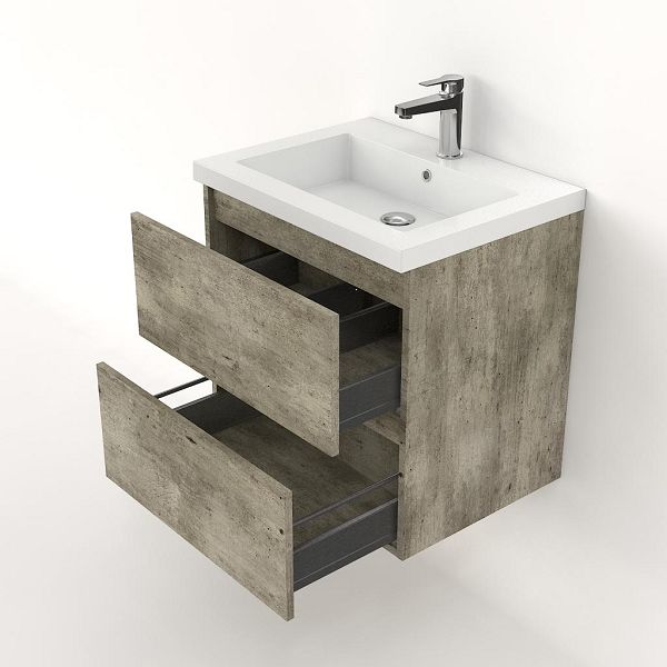| | Bellanti Elena/Esta badmeubel 60x46 2 softclose laden steigerhout licht grijs greeploos polystone wastafel wit met 1 kraangat |