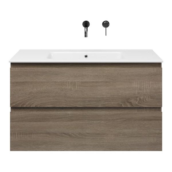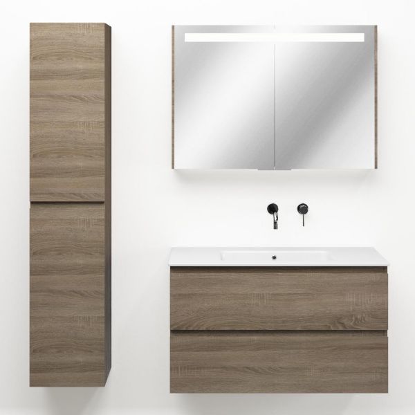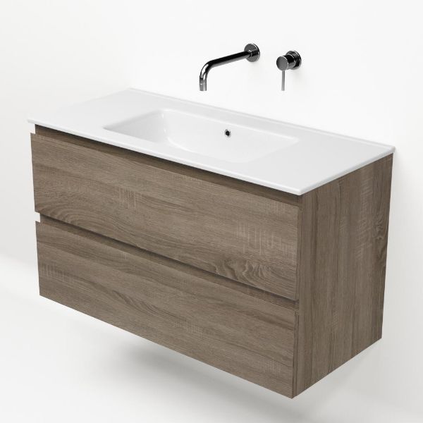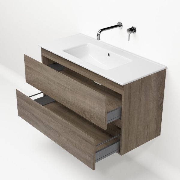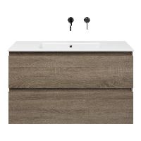 | Bellanti Elena/Etna badmeubel 100x46 2 softclose laden eiken donker greeploos keramische wastafel wit zonder kraangaten |