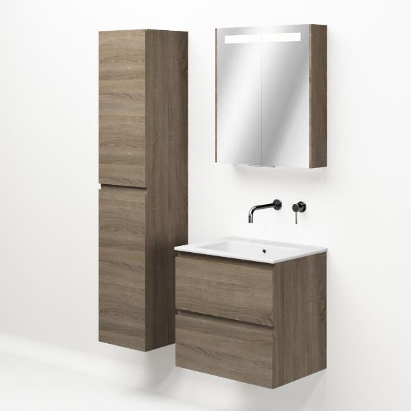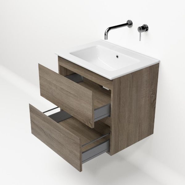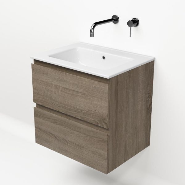 | Bellanti Elena/Etna badmeubel 60x46 2 softclose laden eiken donker greeploos keramische wastafel wit zonder kraangaten |