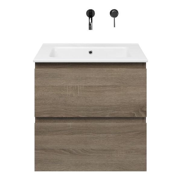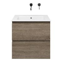 | | Bellanti Elena/Etna badmeubel 60x46 2 softclose laden eiken donker greeploos keramische wastafel wit zonder kraangaten |
