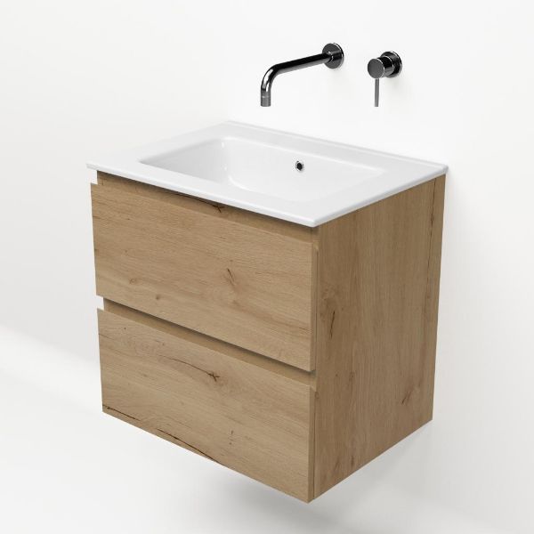 | Bellanti Elena/Etna badmeubel 60x46 2 softclose laden eiken natuur greeploos keramische wastafel wit zonder kraangaten |