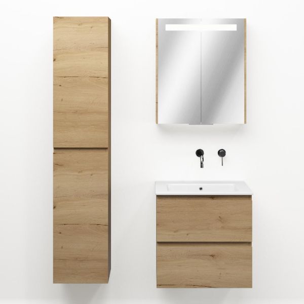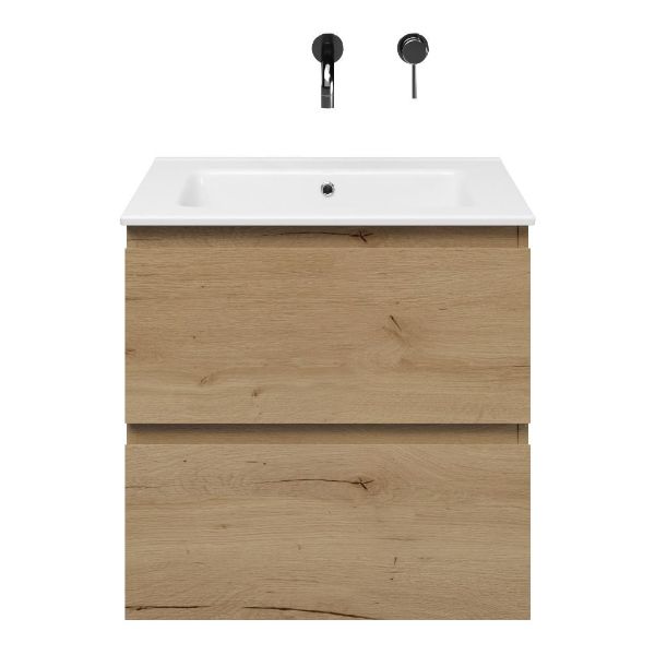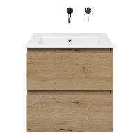 | | Bellanti Elena/Etna badmeubel 60x46 2 softclose laden eiken natuur greeploos keramische wastafel wit zonder kraangaten |