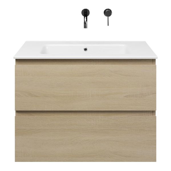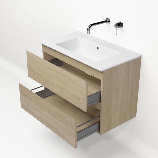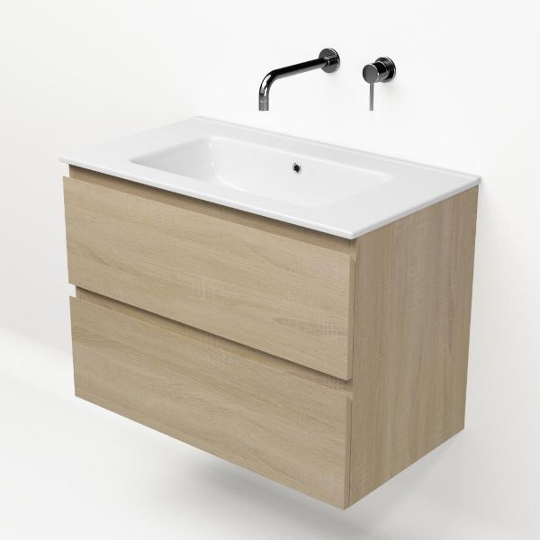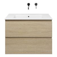 | | Bellanti Elena/Etna badmeubel 80x46 2 softclose laden eiken licht greeploos keramische wastafel wit zonder kraangaten |