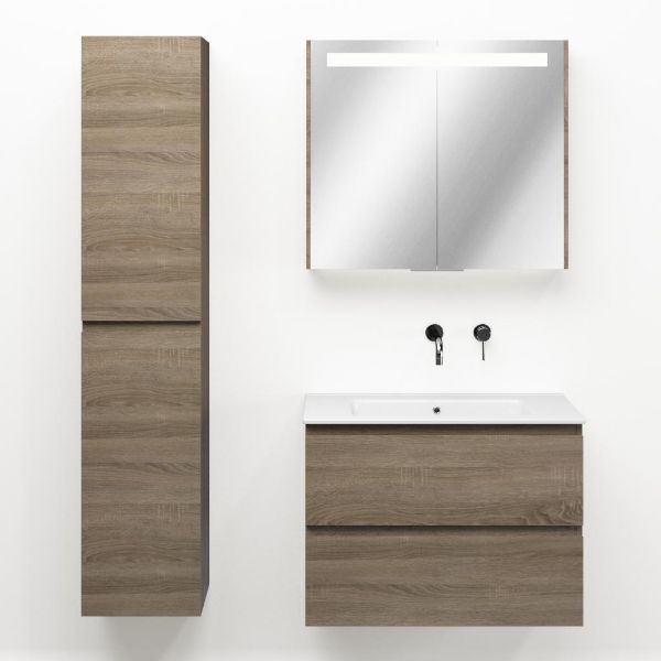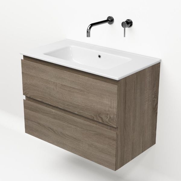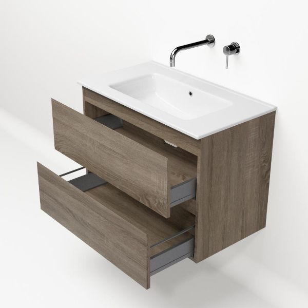 | Bellanti Elena/Etna badmeubel 80x46 2 softclose laden eiken donker greeploos keramische wastafel wit zonder kraangaten |